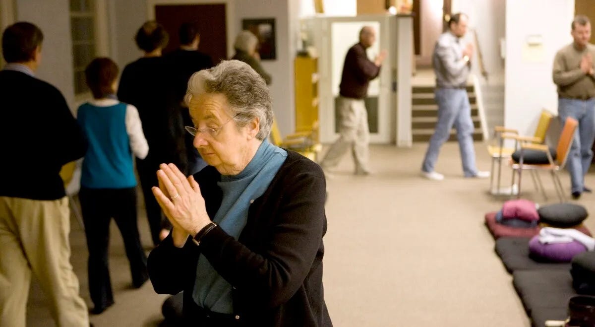 In the zen school of Buddhism, the practice of Zazen reflects the understanding of this reality. Practitioners sit for 20 minutes, meditating, then they ceremoniously stand up, turn and walk briskly in a circle around the room for a short period, eventually returning to their seats to continue meditating. This is repeated three or four times, resulting in about 90 minutes of practice.