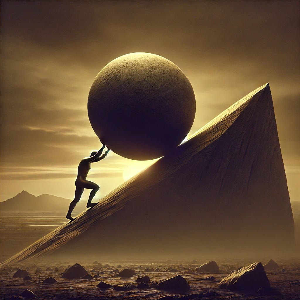 Swapping joy in for happiness is like trying to kick booze by switching to drinking coffee. You’re still chasing an ultimately ephemeral state that, by definition, cannot persist. And you’re relying on exterior things to occasion it in your being. Sisyphus’ stone never stays balanced atop his hill.